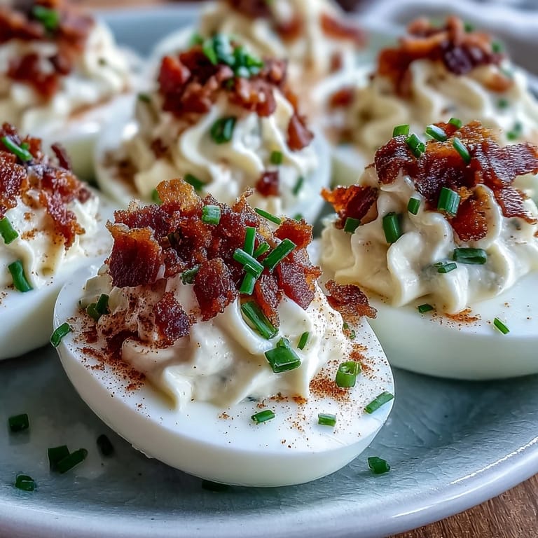 Merken Letzten Sommer gab es die Bacon Ranch Deviled Eggs bei einem Picknick im Park, und plötzlich fragte eine Freundin, ob das Rezept auch ohne Bacon funktioniert – klar, aber niemand wollte darauf verzichten. Es war herrlich zu beobachten, wie die bunten Teller in der Sonne glänzten und alle gemeinsam lachten. Viel mehr als nur ein Snack, wurde daraus ein kleiner Höhepunkt unseres Nachmittags.