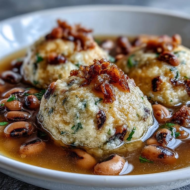 Merken There's something about a pot of black-eyed peas that makes a kitchen feel like home, even when you're cooking in a place that isn't quite yours yet. My neighbor passed over the fence one afternoon with a container of smoked sausage she'd made, and I found myself standing in front of an empty pantry wondering what to do with it. That's when I remembered my grandmother's hands dropping spoonfuls of dumpling batter into a bubbling pot, and how she never seemed to measure anything but somehow it always turned out perfect. This recipe came together from that half-forgotten memory and a whole lot of trial and error on my part.