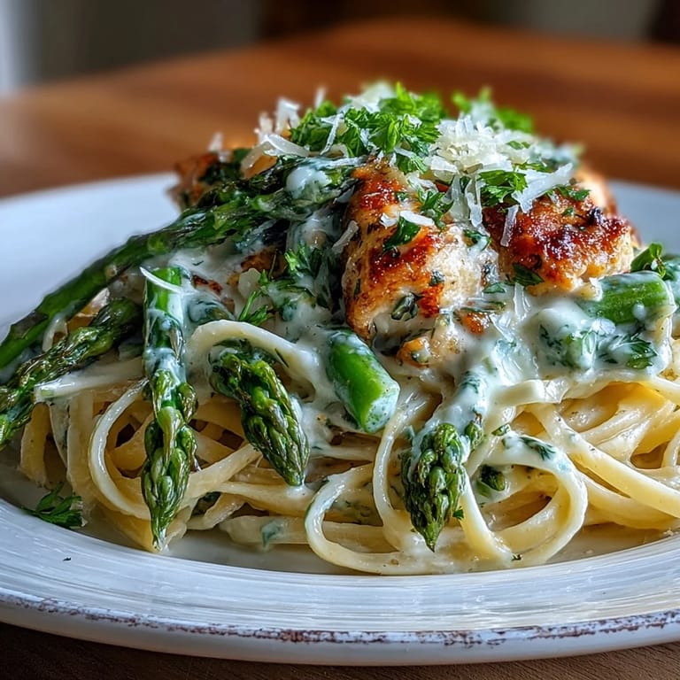 Merken Dieses Gericht entstand an einem kühlen Frühjahrsabend, als ich Spargel auf dem Markt sah und spontan beschloss, etwas Cremiges und Komfortables zu kochen. Der Gedanke, knuspriges, käsebeschichtetes Gemüse mit zarter Pasta zu kombinieren, ließ mich sofort in die Küche eilen. Mein Partner roch den Asiago-Käse, bevor ich auch nur die Hälfte fertig war, und das war das beste Kompliment, das ich bekommen konnte. Seitdem ist dieses Gericht mein Geheimtipp für Abende geworden, an denen ich etwas Besonderes aber Unkompliziertes brauche.