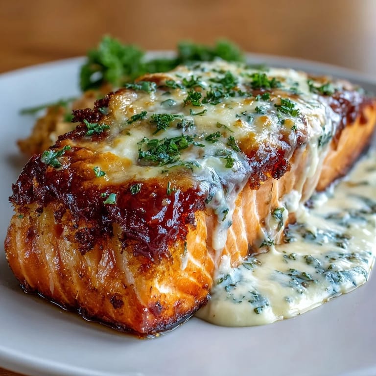Dieser Lachs passt gut neben gedünstetem Grün, cremigem Risotto oder gerösteten Kartoffeln, aber der Lachs ist wirklich der Star. Ich habe herumgespielt mit verschiedenen Käsesorten – Ziegenkäse verleiht ihm eine Kante, Mascarpone macht es reichhaltiger – aber Frischkäse und Parmesan sind die goldene Kombination. Manchmal füge ich eine Spur Thymian oder Estragon in die Sauce ein, und es ist immer noch unmöglich falsch zu machen.
