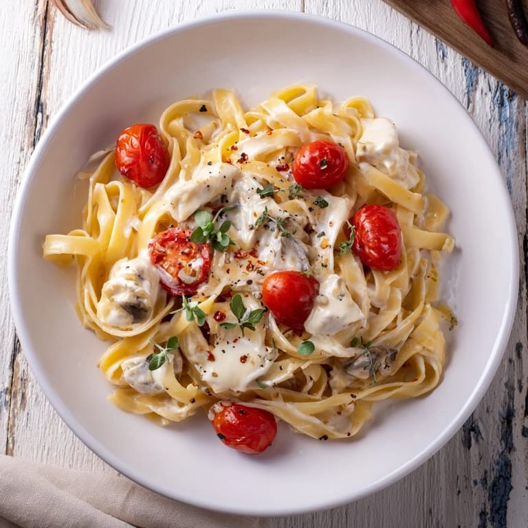 Als ich das erste Mal die Auflaufform aus dem Ofen zog, stand meine Schwester neben mir und fragte ungläubig, ob ich wirklich nur Käse und Tomaten gebacken hätte. Der Duft von geschmolzenem Brie, karamellisierten Tomaten und Thymian füllte die ganze Küche. Wir standen da, mit Gabeln bewaffnet, und probierten direkt aus der Form – noch bevor die Nudeln fertig waren. Es war einer dieser seltenen Momente, in denen ein Gericht so gut wird, dass man vergisst, es hübsch anzurichten.