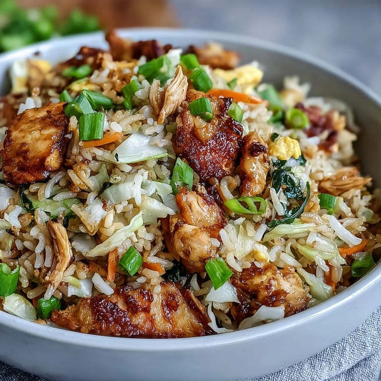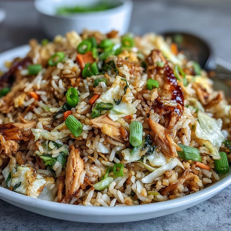 Merken Ich war an einem regnerischen Freitag in der Küche, als mir plötzlich klar wurde, dass ich Reste von Hähnchen, Reis und ein paar verwaiste Gemüsestücke im Kühlschrank hatte. Statt einfach alles durcheinander in eine Pfanne zu werfen, erinnerte ich mich an die knusprigen Frühlingsrollen, die ich letzte Woche bestellt hatte, und dachte mir: Warum nicht diese Aromen in gebratenen Reis packen? Das Ergebnis war so köstlich und nahrhaft, dass es seitdem zu meinem Go-to-Essen für geschäftige Wochentage geworden ist.