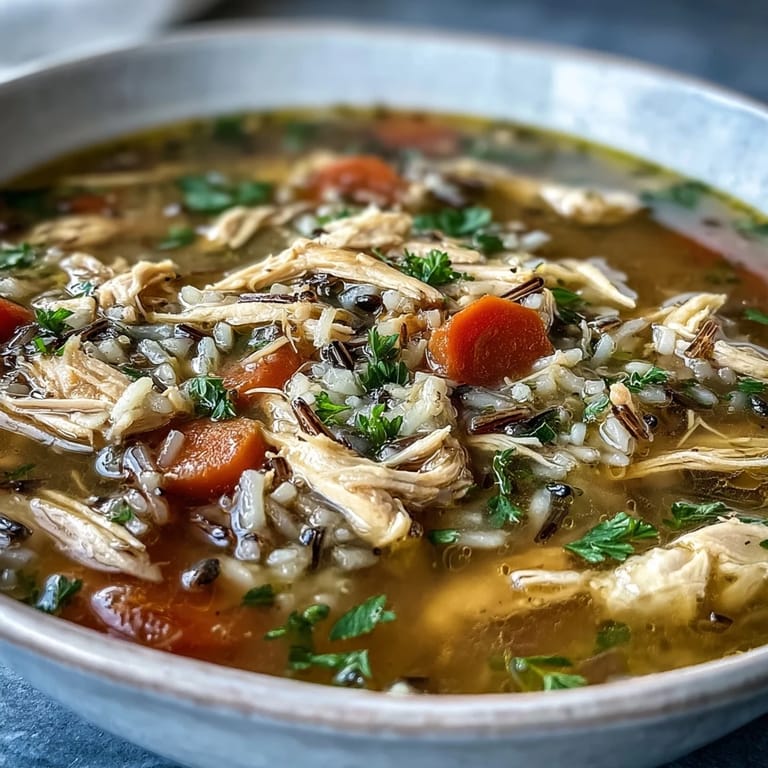 Merken There's something about wild rice that makes a kitchen smell like home, even if you're cooking it for the first time. I discovered this soup on a gray October afternoon when my neighbor mentioned she'd been making it for years, and the way her eyes lit up when describing it made me want to try it immediately. The combination of tender chicken, earthy wild rice, and those golden carrots felt like the kind of meal that could turn any ordinary Tuesday into something worth remembering. What struck me most was how simple it actually was—no complicated techniques, just honest ingredients simmering together into pure comfort.