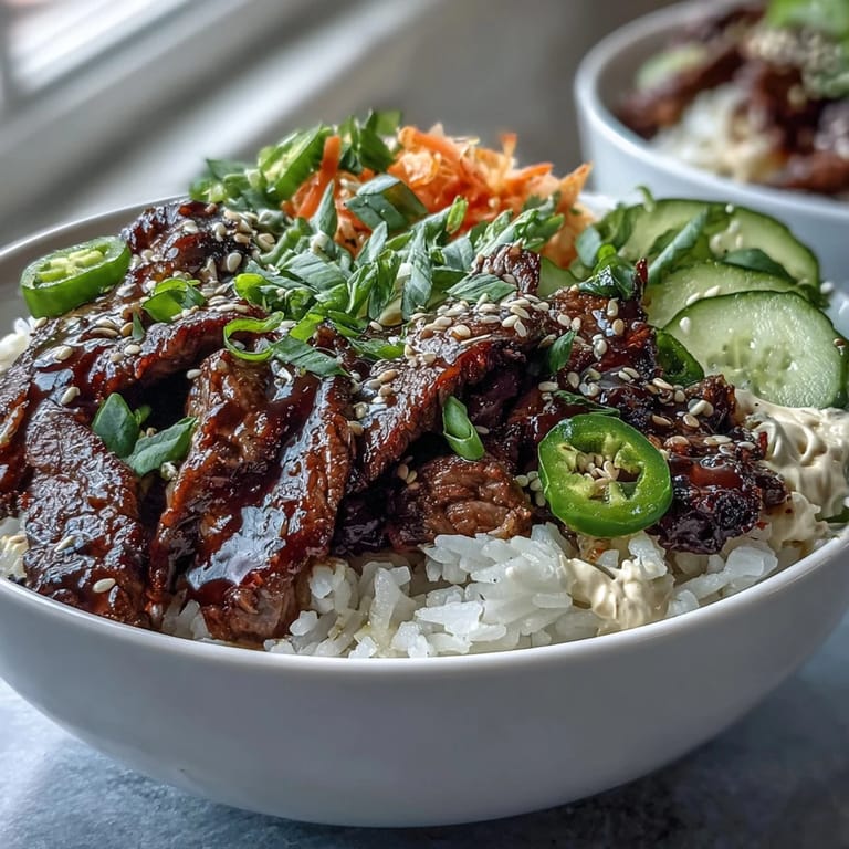 Merken There's something about the sizzle of beef hitting a hot wok that makes you feel like you're cooking something worth the effort. I discovered this bowl while standing in a crowded Seoul food court, watching a vendor layer rice, seared beef, and bright vegetables with the kind of casual confidence that only comes from making something a hundred times. The balance of umami, heat, and cool crunch completely changed how I thought about weeknight dinners, and now it's become my go-to when I want something that feels indulgent but comes together in under an hour.