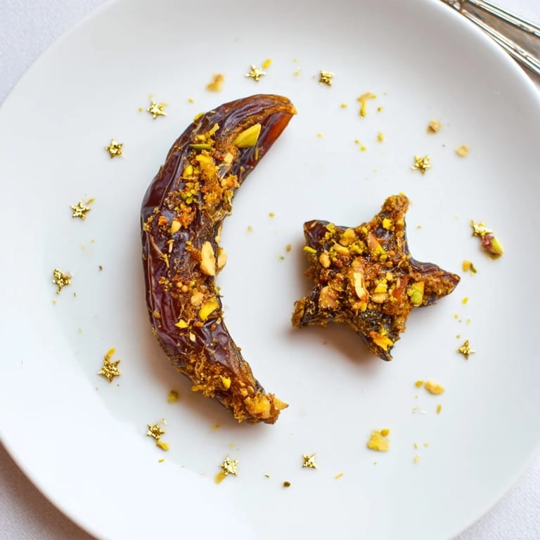 - Die Nussfüllung vorsichtig in jede Dattel geben, sodass sie die Konturen der Mond- und Sternformen ausfüllt.