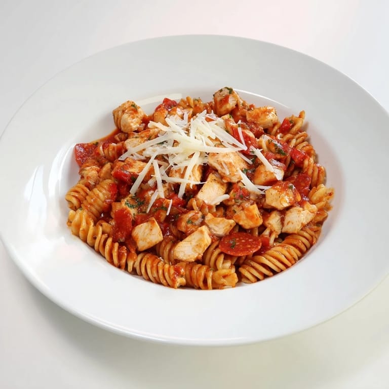 Merken Ich habe dieses Gericht an einem Donnerstagabend erfunden, als meine Kinder gleichzeitig Pizza und Nudeln wollten. Der Kompromiss wurde zum neuen Favoriten. Schon beim Anbraten roch die Küche nach Pizzeria, und ich wusste, dass ich etwas Richtiges gefunden hatte. Die Pfanne brutzelte, der Käse schmolz, und niemand beschwerte sich mehr. Seitdem koche ich es mindestens zweimal im Monat.