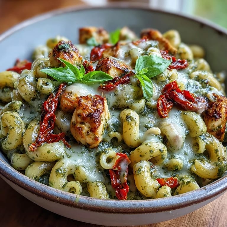 Merken Es war ein Dienstagabend, als ich diese Schüssel zum ersten Mal zusammenbrachte – die Idee kam mir, während ich an einem regnerischen Nachmittag durch meine Küchenschränke stöberte und feststellte, dass ich Pesto, Hühnchen und Pasta hatte, aber keine Lust auf das Übliche. Ich fragte mich, was passieren würde, wenn ich diese drei Komponenten mit der Wärme eines guten Chili Mac kombinieren würde. Das Ergebnis war so unerwartet köstlich, dass ich die Portion, die ich für Reste sparen wollte, komplett aufaß. Seitdem ist dieses Gericht mein Geheimtipp für Abende, an denen ich etwas Tröstliches, aber Interessantes brauche.