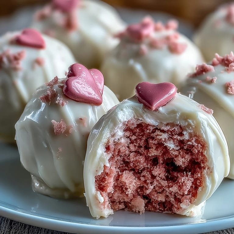 Merken Celebrate the joy of friendship with these stunning Galentine's Cake Pops. This recipe takes the classic pink velvet flavor and elevates it into a bite-sized treat, combining vibrant cocoa-infused cake with a tangy cream cheese frosting center. Dipped in smooth white chocolate, these pops are as beautiful as they are delicious, making them the ultimate addition to any Galentine's gathering.