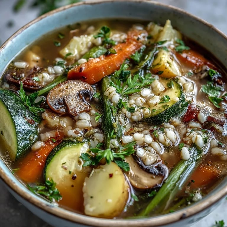 Merken An autumn afternoon, my grandmother was chopping vegetables with the kind of rhythm that comes from decades of cooking, and she turned to me with this soup simmering behind her. She said the barley was the secret, that it transformed broth into something thick and substantial without needing cream. I've made this soup dozens of times since, and each time those pearl grains soften in the warmth, I think about her hands moving across that cutting board.