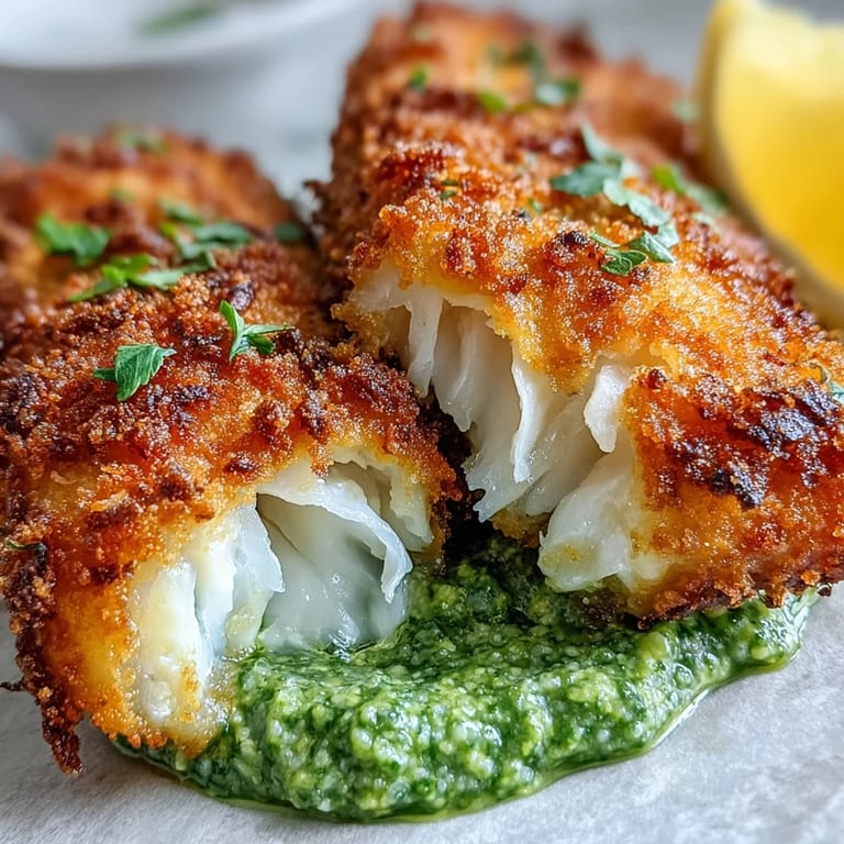 Ich habe diese Goujons einmal für Freunde gemacht, die behaupteten, Fisch sei langweilig. Einer von ihnen aß vier Portionen und fragte nach dem Rezept, bevor der Abend vorbei war. Seitdem nenne ich das Gericht heimlich meinen Fisch-Bekehrungstrick. Es ist diese Mischung aus salzigem Parmesan, zartem Fisch und der leuchtend grünen Frische des Pestos, die jeden überzeugt. Manchmal serviere ich es mit Zitronenspalten und einem einfachen Salat, und es fühlt sich an wie ein kleines Fest.