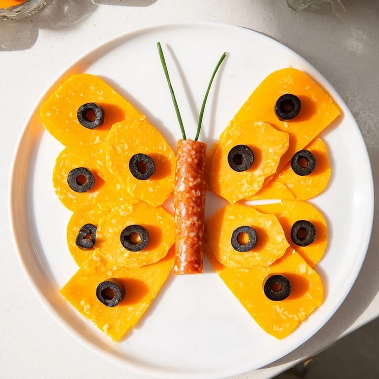 Merken Meine Tochter kam eines Nachmittags aus der Schule nach Hause und erzählte aufgeregt von einem Kunstprojekt über Schmetterlinge. Ich hatte gerade Käse, Salami und Oliven in der Küche, und plötzlich hatte ich die verrückte Idee: Warum nicht ein essbares Kunstwerk schaffen? Das Butterfly Migration Platte war geboren—einfach, farbenfroh und irgendwie magisch auf dem Tisch.