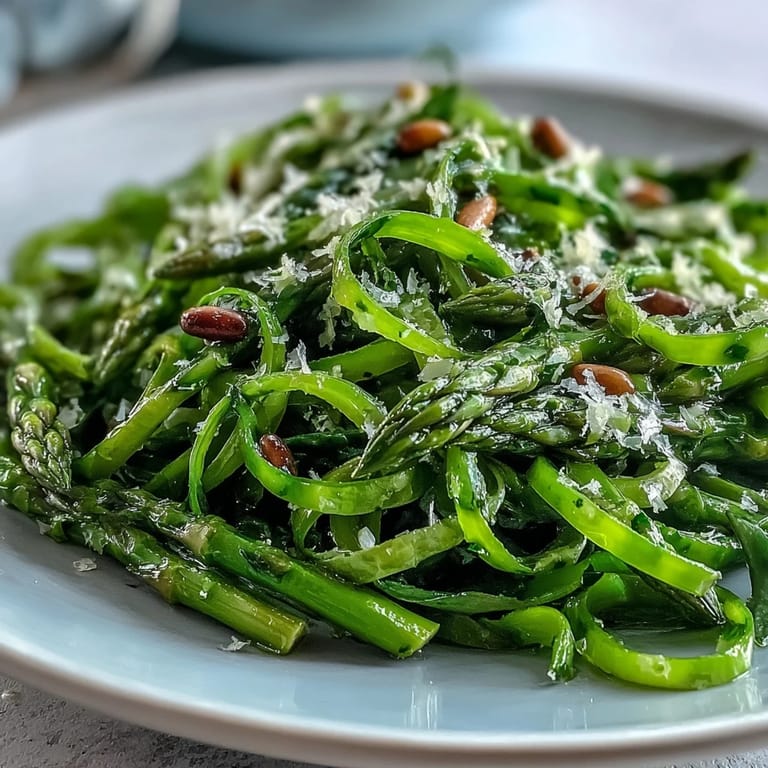 Merken Es gibt diese Tage im späten Frühling, wenn beim Gemüsestand die ersten Bündel frischer Spargel lauthals nach Aufmerksamkeit rufen und ich einfach nicht widerstehen kann. Beim ersten Mal habe ich mich noch gefragt, ob die zartgrünen Stangen auch roh etwas hermachen – ich hätte nie gedacht, dass ihre feinen Raspeln so knackig und sanft zugleich schmecken. Das Rascheln des Spargels auf dem Holzbrett hat mir sofort Lust gemacht, ein leichtes, zitroniges Gericht auszuprobieren. Die Idee, alles mit etwas Parmesan zu toppen, entstand spontan, nachdem ich eine vergessene Packung im Kühlschrank entdeckte. Seitdem ist dieser Salat für mich ein Symbol für frische, unkomplizierte Frühlingsküche.
