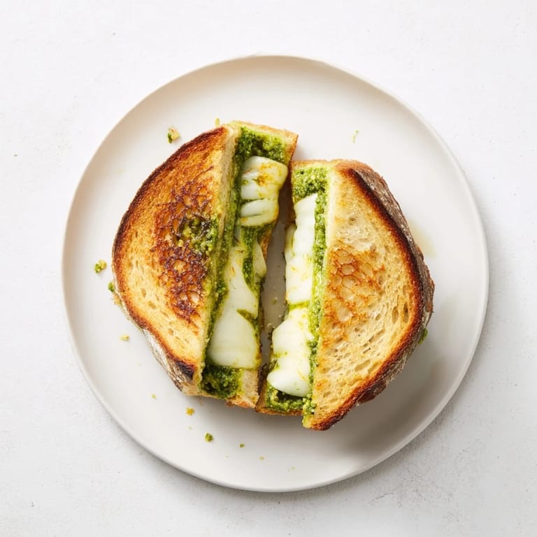 Merken Der erste Frühlingsregen klopfte an mein Küchenfenster, als ich diese Erbsen-Pesto-Variante ausprobierte. Die Erbsen aus dem Tiefkühlfach sollten eigentlich nur eine Beilage werden, aber ihre leuchtend grüne Farbe inspirierte mich zu etwas Neuem. Das Ergebnis war ein gegrilltes Käsesandwich, das wie der Frühling selbst schmeckt. Jetzt ist es jedes Jahr mein Willkommensgruß an die wärmere Jahreszeit.