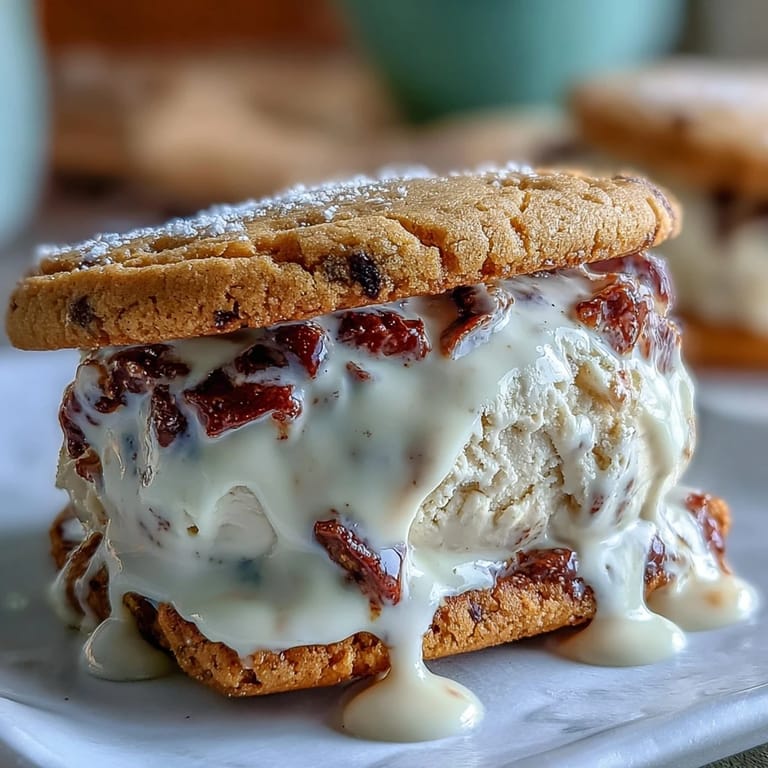 The first time I made these, I got impatient and tried assembling the sandwiches when the ice cream was only partially frozen, and they turned into a melted disaster within minutes. Now I'm religious about letting everything freeze thoroughly—the ice cream slab for at least two hours, and then the assembled sandwiches for another thirty minutes before serving. This patience at the end is what separates a pretty dessert from one that actually holds together when your guests bite into it.
