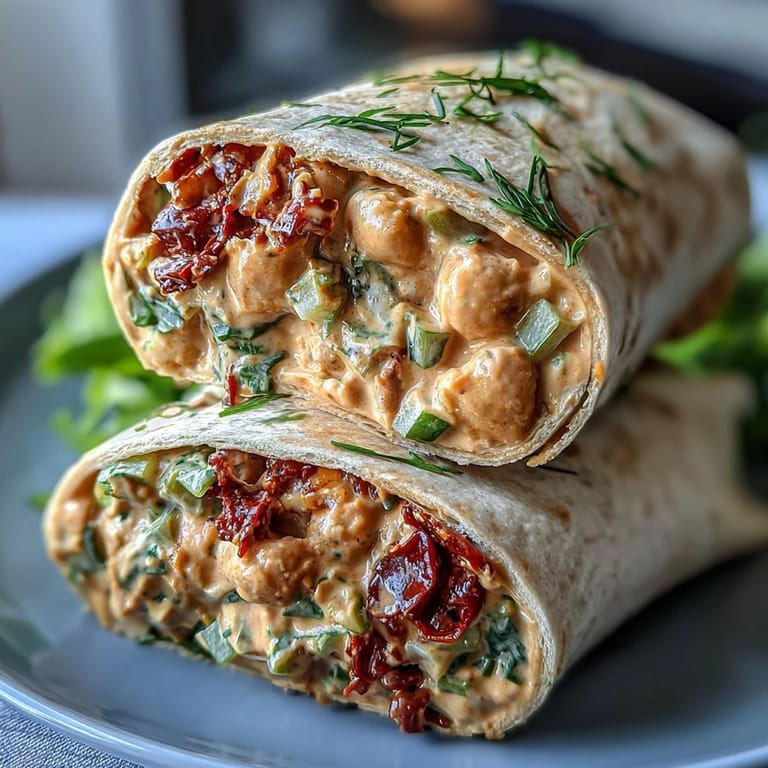 Merken There's something wonderfully practical about discovering a recipe that actually works with your lifestyle instead of against it. I stumbled onto this chickpea wrap combination during a Wednesday when I had half a can of sun-dried tomatoes sitting in my pantry and absolutely no idea what to do with them. What started as creative problem-solving turned into something I now make every other week, partly because it's ready in twenty minutes and partly because my friends stopped asking what was in it and just started asking when I'd make it next.